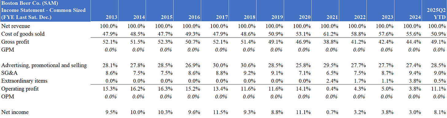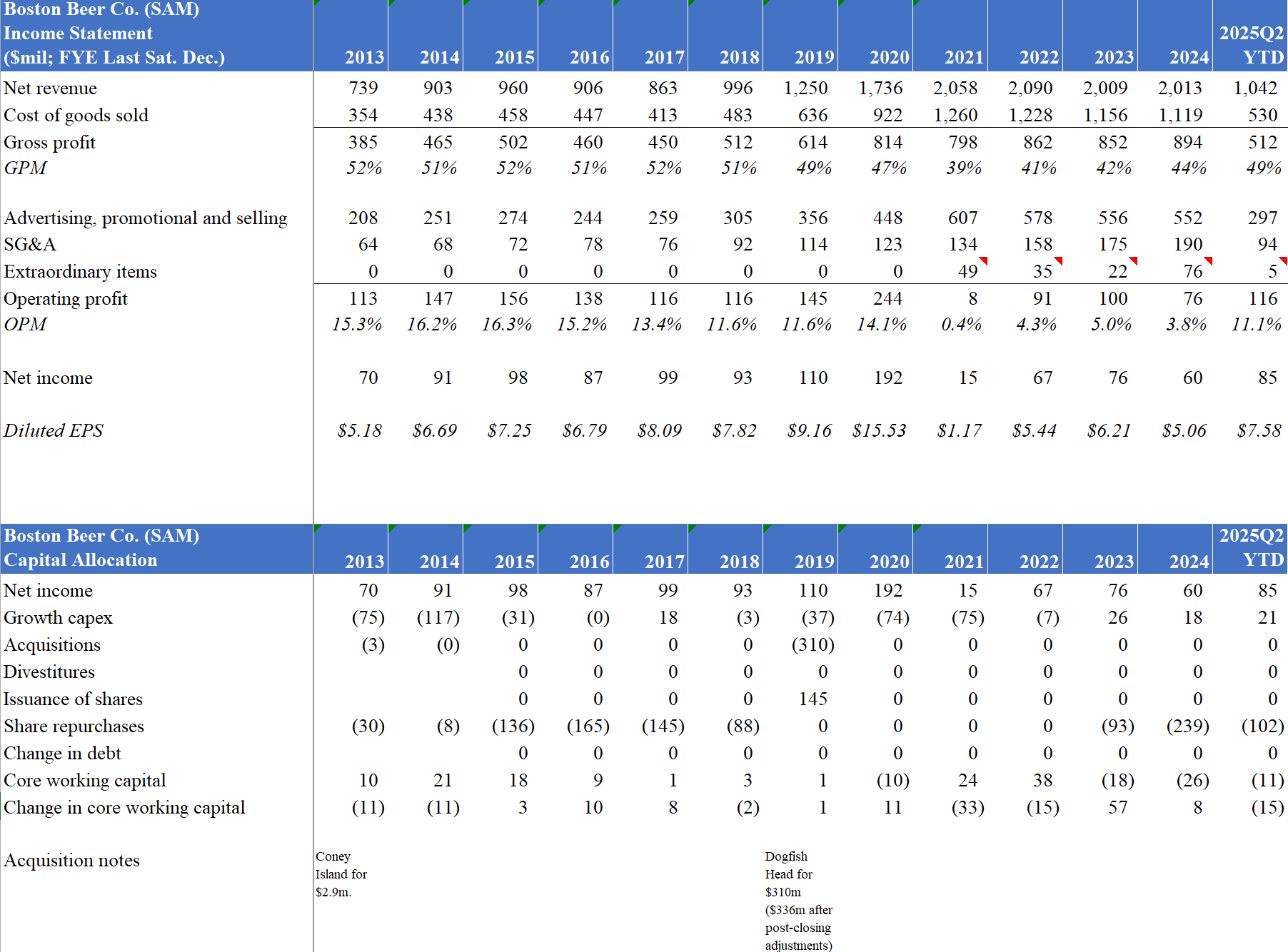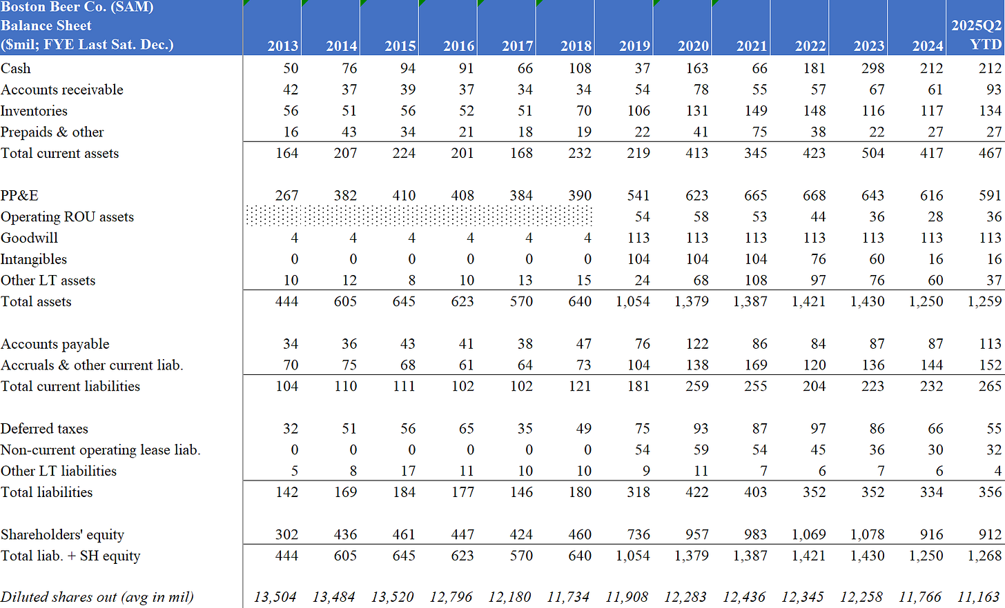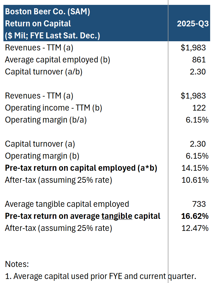 With 10.8mm shares outstanding and a price of $225 (unchanged since the Q2 update), Boston Beer has a market value of $2.43 billion. Take off $210mm for net cash, and you’re at $2.22 billion.