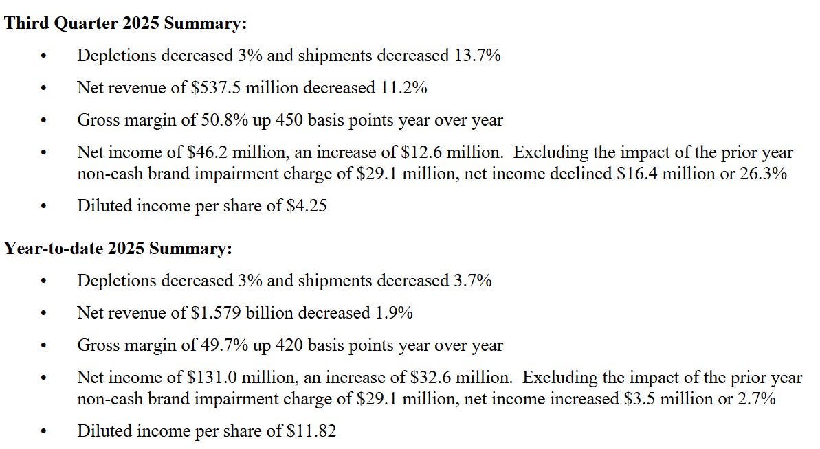 Q3 volume of 1.936 million barrels down 13.7% compared to Q3-2024. TTM volume off 3%.