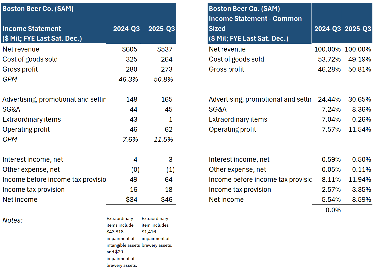 Q4 profitability: 5 or 6 years ago, Q4 was profitable, even though it was the lowest in terms of volume; now that the company has shifted toward summer-oriented beverages (Twisted Tea, Truly, Sun Cruiser), Q4 will show a loss. Part of that is ramping up production to handle summer volumes, and part is marketing spend.