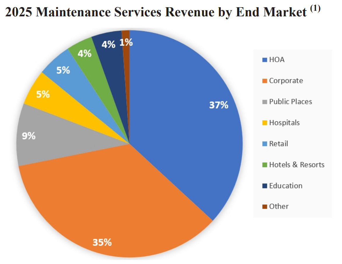 The company boasts 11,700 office parks and corporate campuses, 10,000 residential communities, and 700 educational institutions, and serves as the "Official Field Consultant” for Major League Baseball (whatever that means).