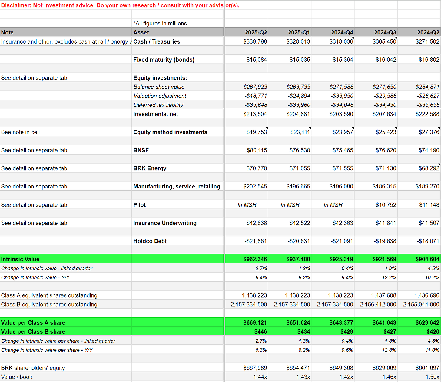 Live BRK Valuation Spreadsheet (Paid Subscribers)