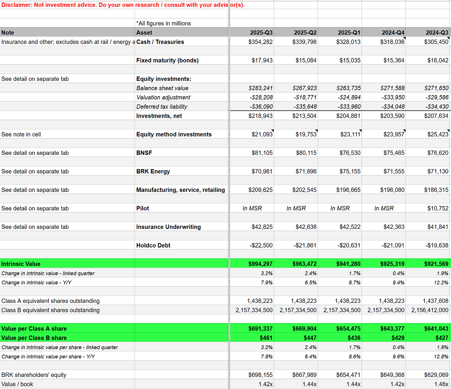 BRK Q3 Analysis & Sum-of-the-Parts Valuation