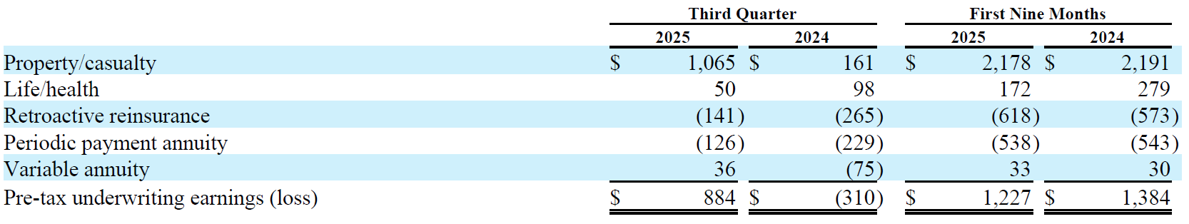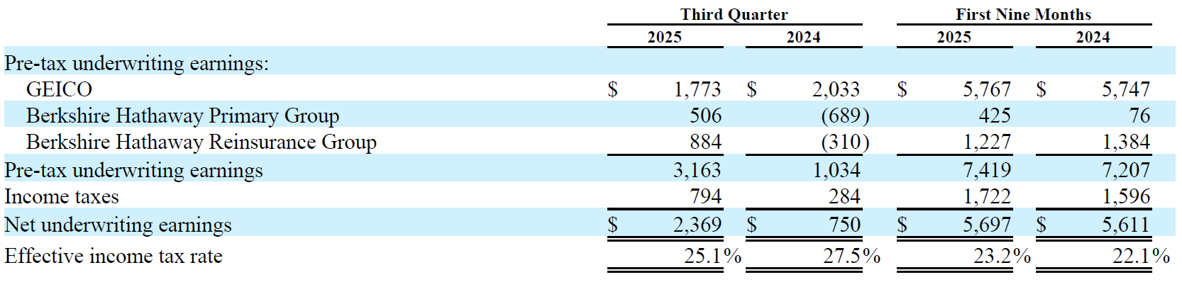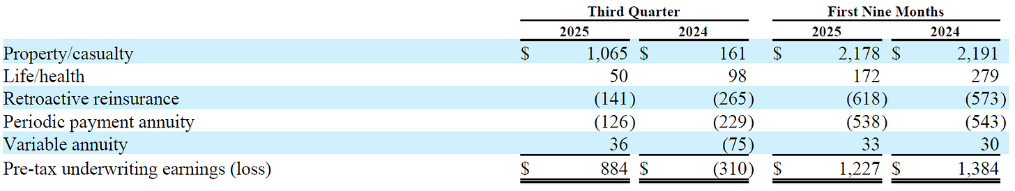 GEICO’s results include a relatively modest $495 million of favorable loss development YTD 2025 compared to $339 million in YTD 2024.