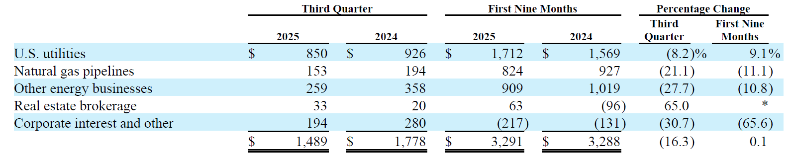 The 10Q notes the One Big Beautiful Bill Act enacted on July 4 that accelerates the phase-out of clean energy projects. BHE’s reported tax benefit amounted to $606 million in Q3 and $1.385 billion YTD. The loss of such tax benefits would be a meaningful hit to BHE.