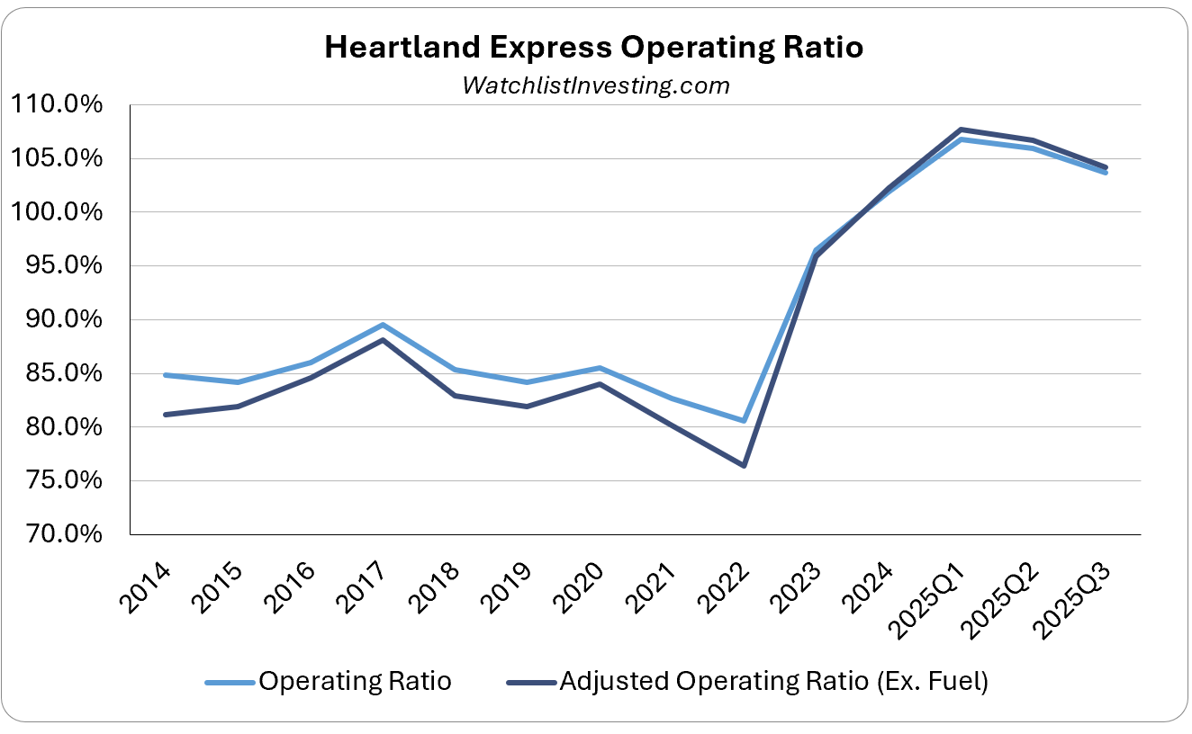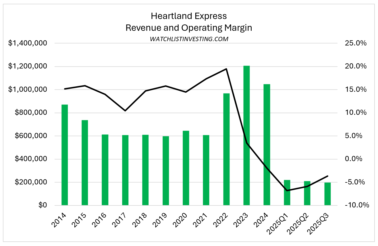 Importantly, Heartland Express, Millis Transfer, and Smith Transport brands were profitable during the quarter; overall results suffered from weakness at CFI. This is an improvement from Q2, when only the Heartland Express brand was profitable.