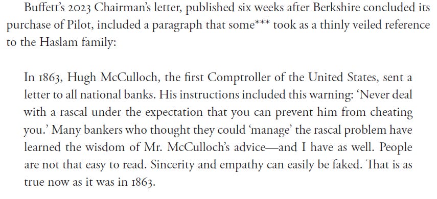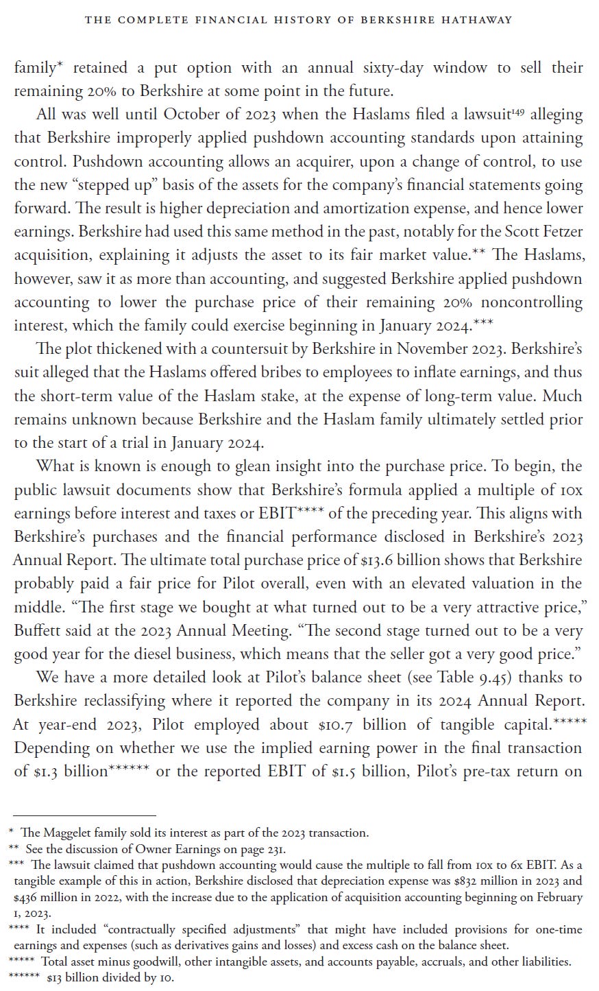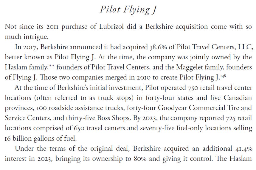 One of the more unusual additions is the story of Berkshire’s acquisition of Pilot Flying J: a staged purchase, pushdown accounting, litigation, a countersuit, and a settlement before trial. Oh, and incredible insight into Berkshire’s purchase framework.