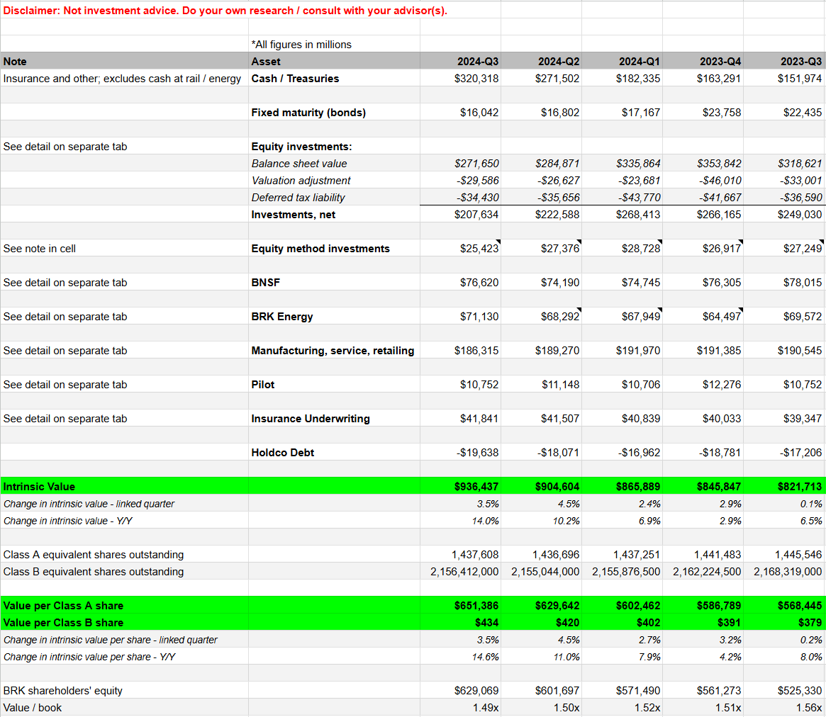 Digging into Berkshire's Q3 results and an updated valuation (live Google Sheet)