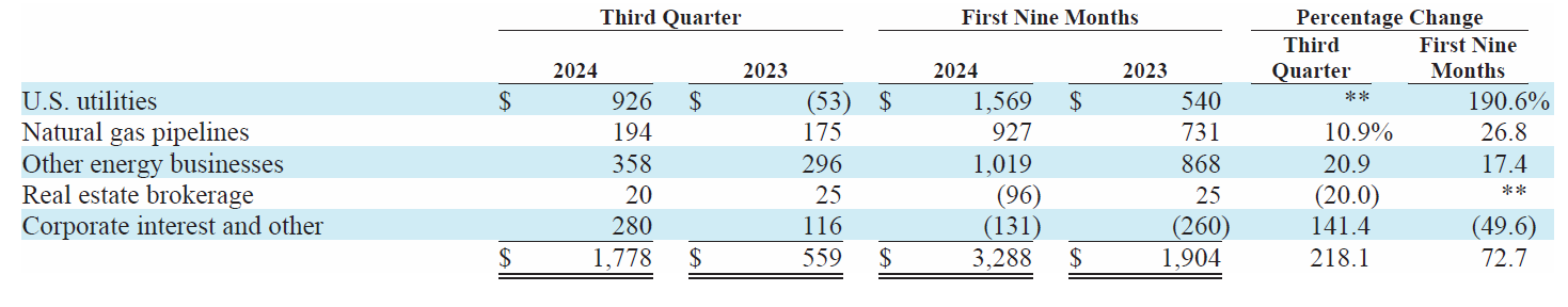 The big news at BHE in Q3 was Berkshire increasing its ownership to 100% by buying the holdings once held by the late Walter Scott.