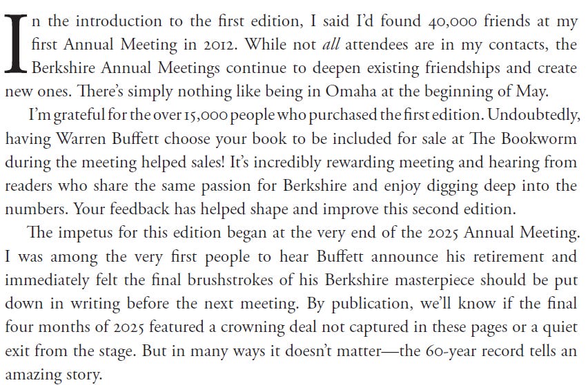 Thank you to everyone who read the first edition, gave feedback, shared it, or stopped me in Omaha to talk Berkshire. That feedback helped shape this second edition.