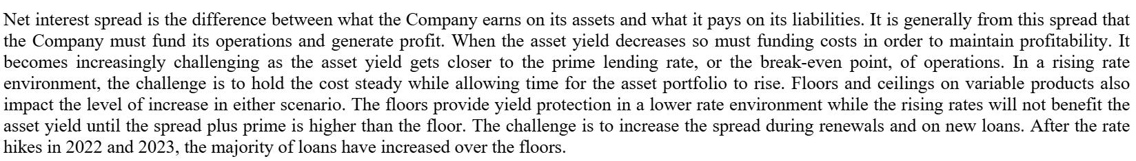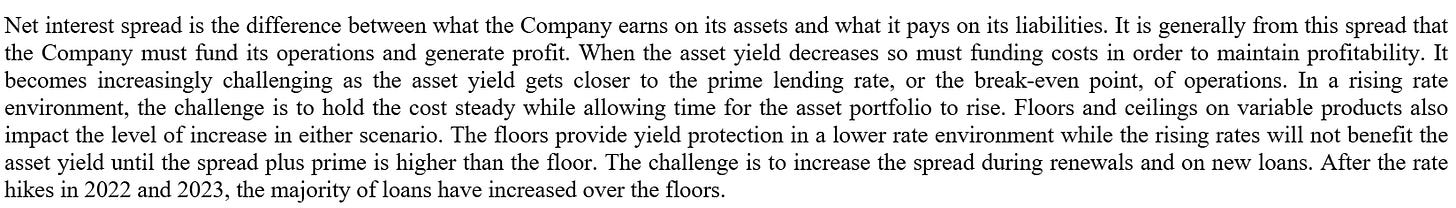 I found the conversational tone of its 10K very refreshing, with plain language clearly directed toward smaller individual owners and not Wall Street. For example, here’s the bank’s discussion of net interest margin: