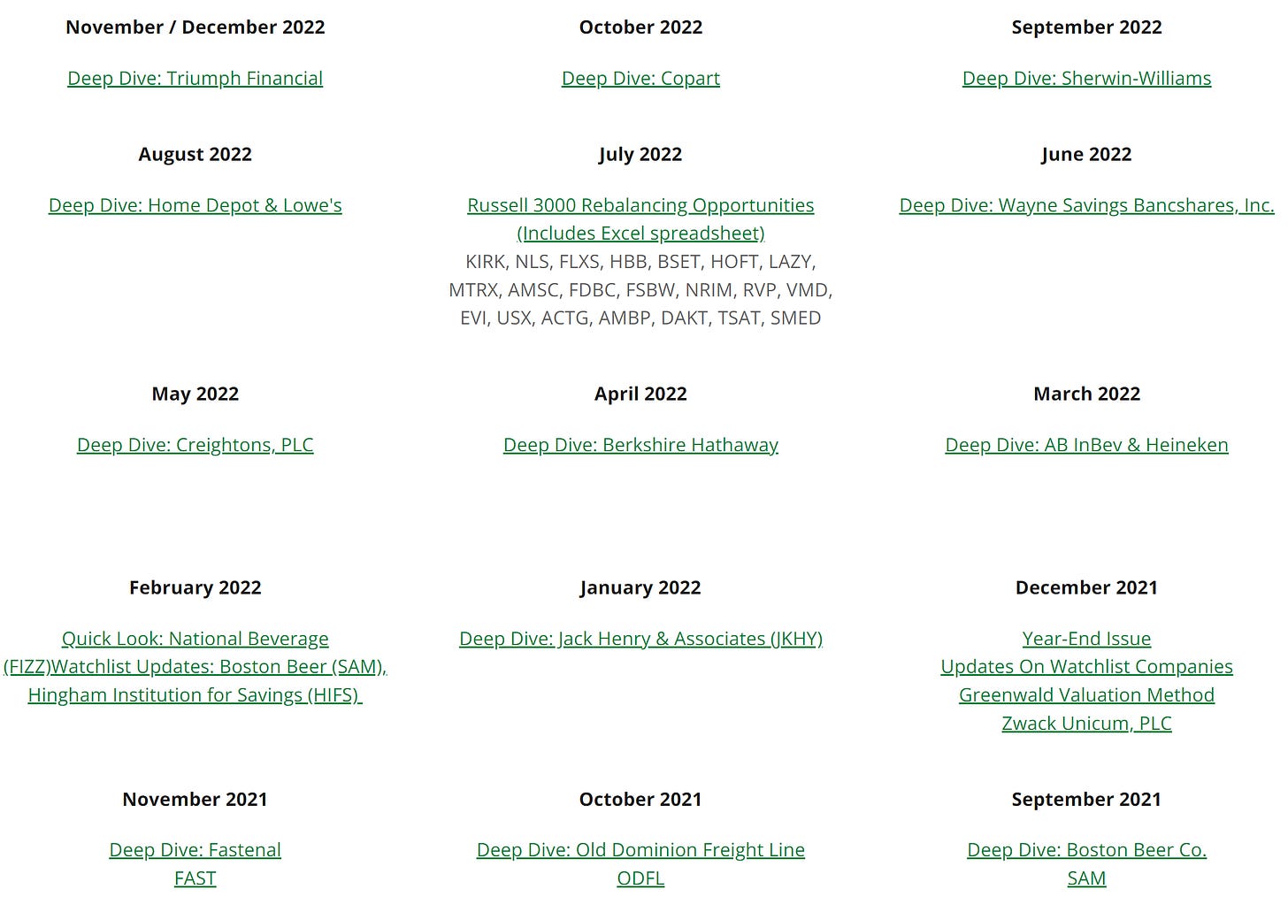 Researching stocks like Copart, UK beauty products nanocap Creightons PLC, Berkshire Hathaway, and the rest takes hundreds of hours. As a subscriber, you gain access to all of that bottoms-up research in a nice tidy package.