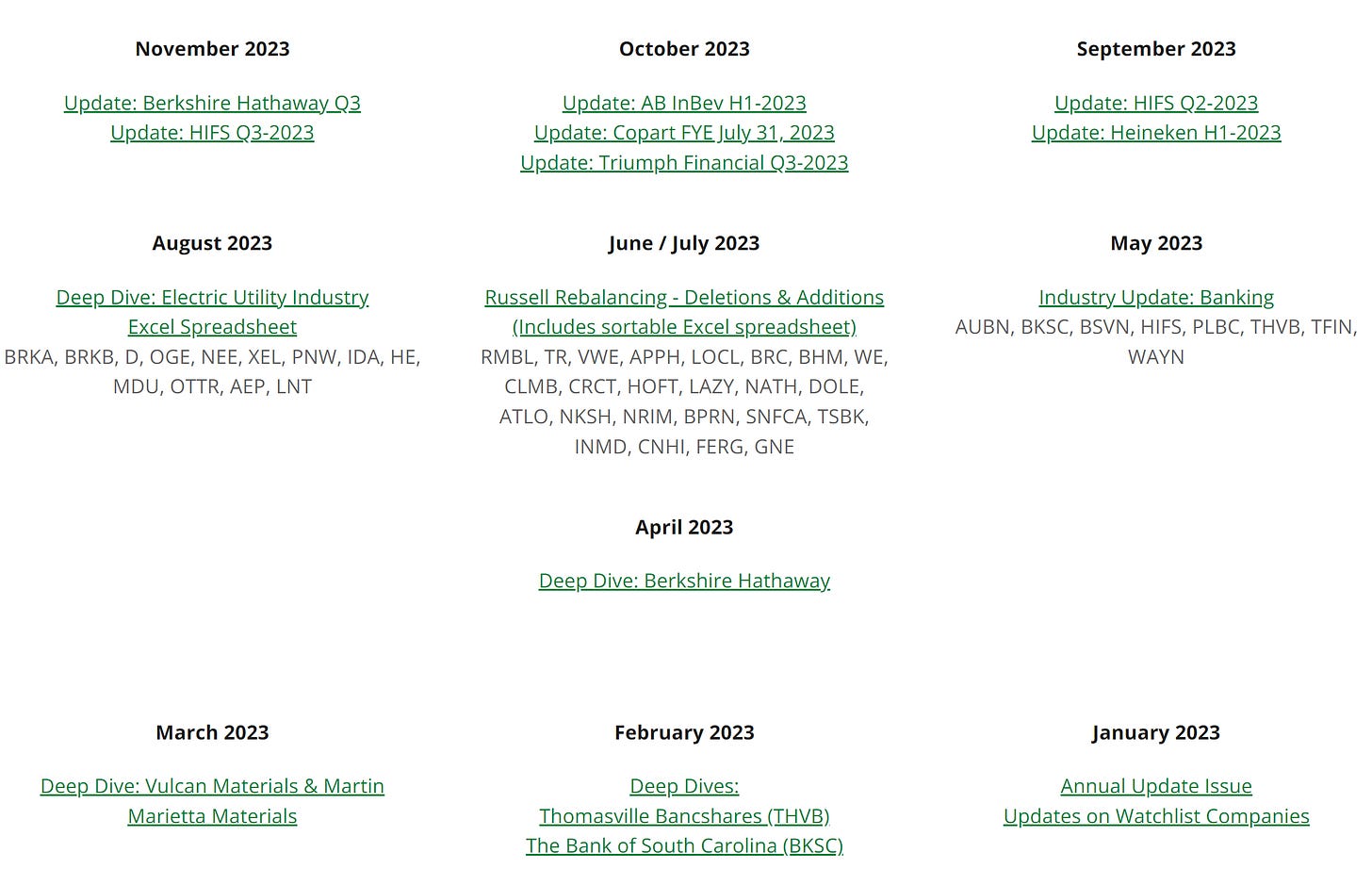 As a subscriber, you also gain access to the Watchlist on Google Sheets with live prices. In addition, I’ve added a real-time Berkshire Hathaway valuation model that features a sum-of-the-parts analysis of the conglomerate. You’ll also gain access to subscriber-only Google Meetups where we discuss the latest issues and other topics of interest to the value investor.