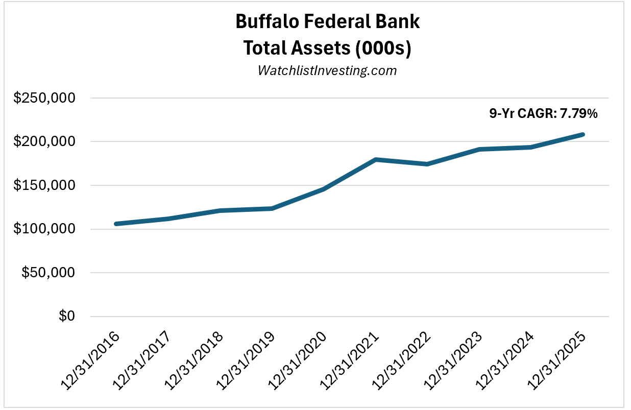 Crazy Woman Creek Bancorp is the name of the holding company. It does business as the Banks of Buffalo, Gillette, and Sheridan. It’s on the FDIC as Buffalo Federal Bank of Buffalo, Wyoming (FDIC Cert. # 29696).