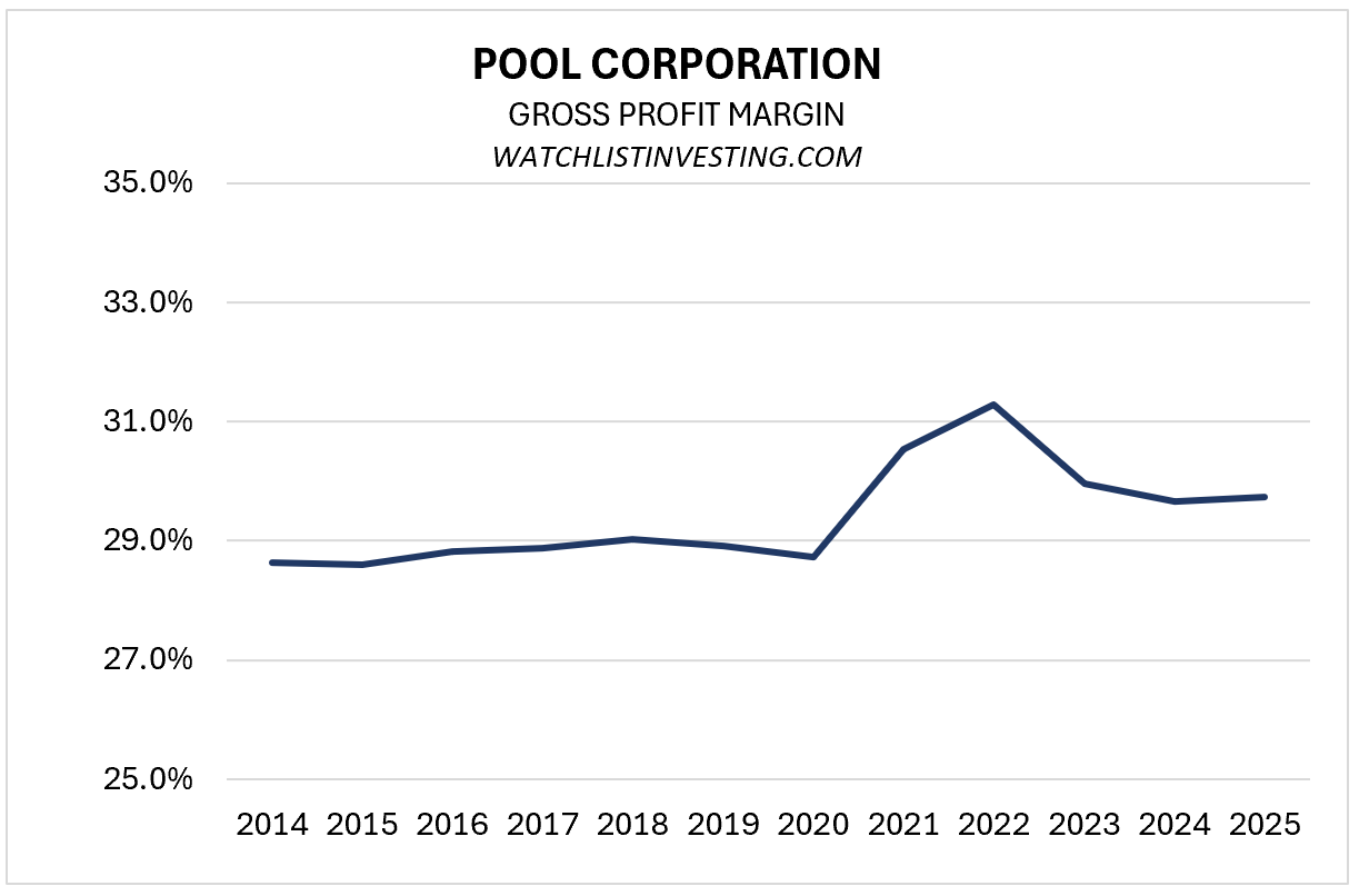 Additionally, Pool acquired Porpoise/Sun Wholesale in December 2021, resulting in a structural increase in its distribution capabilities.