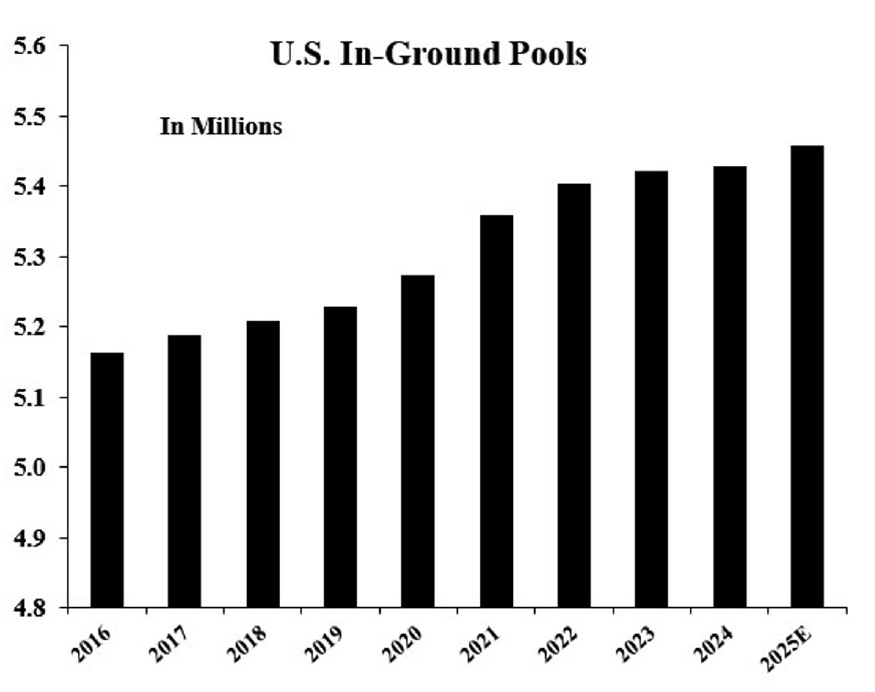 Pool Corp is the largest wholesale distributor of pool supplies in the world. It doesn’t disclose market share; however, it is thought to have a market share of between 25% and 35% of between $15 and $20 billion of industry sales.