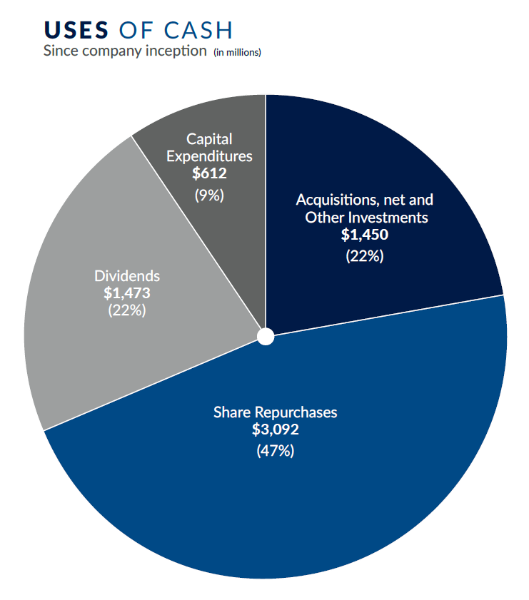 Here’s an interesting chart from the 2025 annual report showing the company’s uses of cash since inception.