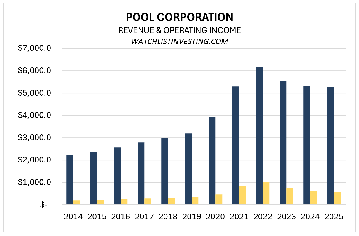 I thought it was about time to take a look at Pool Corporation. Berkshire Hathaway first disclosed a stake in the pool products distribution business in Q3 2024, and upped it to a 9.2% stake in August 2025. Shares currently trade at $231 compared to Berkshire’s estimated average cost of $320.