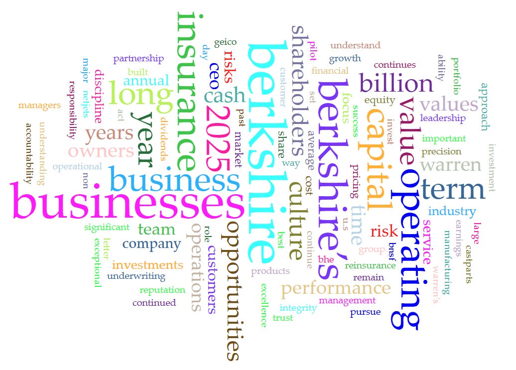 A 100-word word bubble using Greg Abel’s inaugural CEO letter.