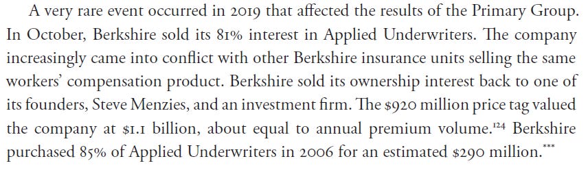 October 10, 2019: Berkshire sells its 81% interest in Applied Underwriters for $920 million to avoid conflicts between its units selling workers’ compensation insurance.