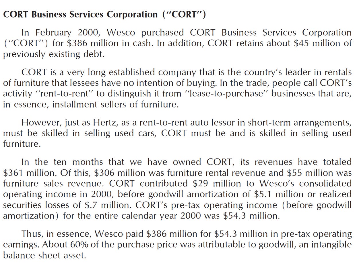 February 18, 2000: Wesco (then 80% owned by Berkshire) acquires CORT.