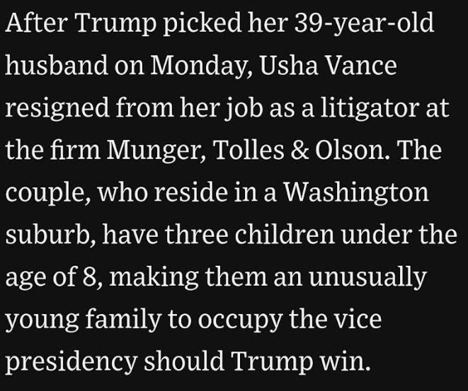 Vance connection to BRK: This is admittedly a Kevin Bacon-style connection, but the Republican VP pick’s wife worked at Munger, Tolls & Olson. Small world.